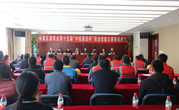 10月25日上午,怀柔区建筑业第十五届“中航建设杯”职业技能大赛颁奖典礼在安博(中国)总部三层多功能厅举行。怀柔区建筑业协会会长、大赛组委会副主任王贵军,区总工会副主席解忠明,集团公司总工程师、大赛组委会副主任陈劲一同参加,同时到场的还有各参赛单位代表及获奖选手共计50余人。
