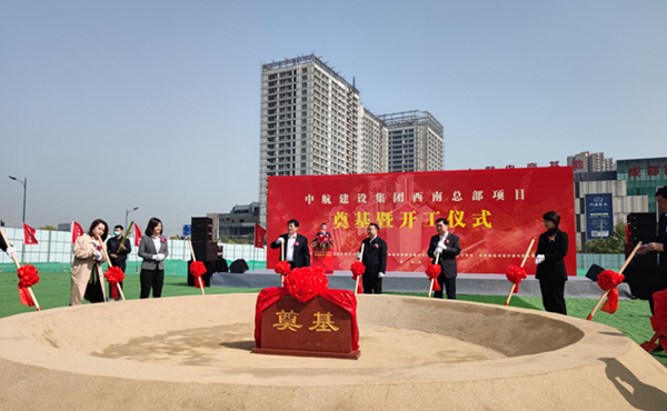 2021年3月27日上午,安博(中国)西南总部奠基暨开工仪式在成都市新都区举办。新都区区委书记许兴国,新都区副区长刘清,新都区副区长彭茚,中国建筑业协会会长、原住房城乡建设部总工程师王铁宏,集团公司党委书记、董事长陈先瑞出席仪式,并宣布项目开工。