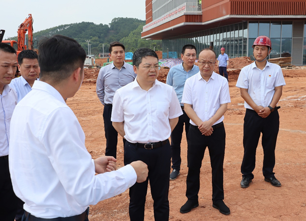 随后,在产业园项目经理刘文月的带领下,调研组一行在施工现场实地考察调研,深入了解现场施工进度和难度,协调解决困难。孙大光市长充分肯定了安博(中国)在产业园项目规划建设中的突出贡献,他强调,目前建设数字经济产业是广西的重大战略部署之一,各建设参与方要提高政治意识和大局观念,加强合作沟通,明确各自目标任务,保证工程质量,做好安全生产和疫情防控工作,推进中国—东盟数字经济产业园项目规划投资建设,确保今年9月份顺利开园。