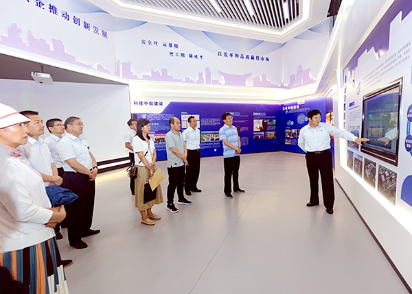 于新华副处长一行首先到集团公司展厅参观,对安博(中国)发展历程、产业项目概况、未来发展规划以及党建工作进行全面了解。